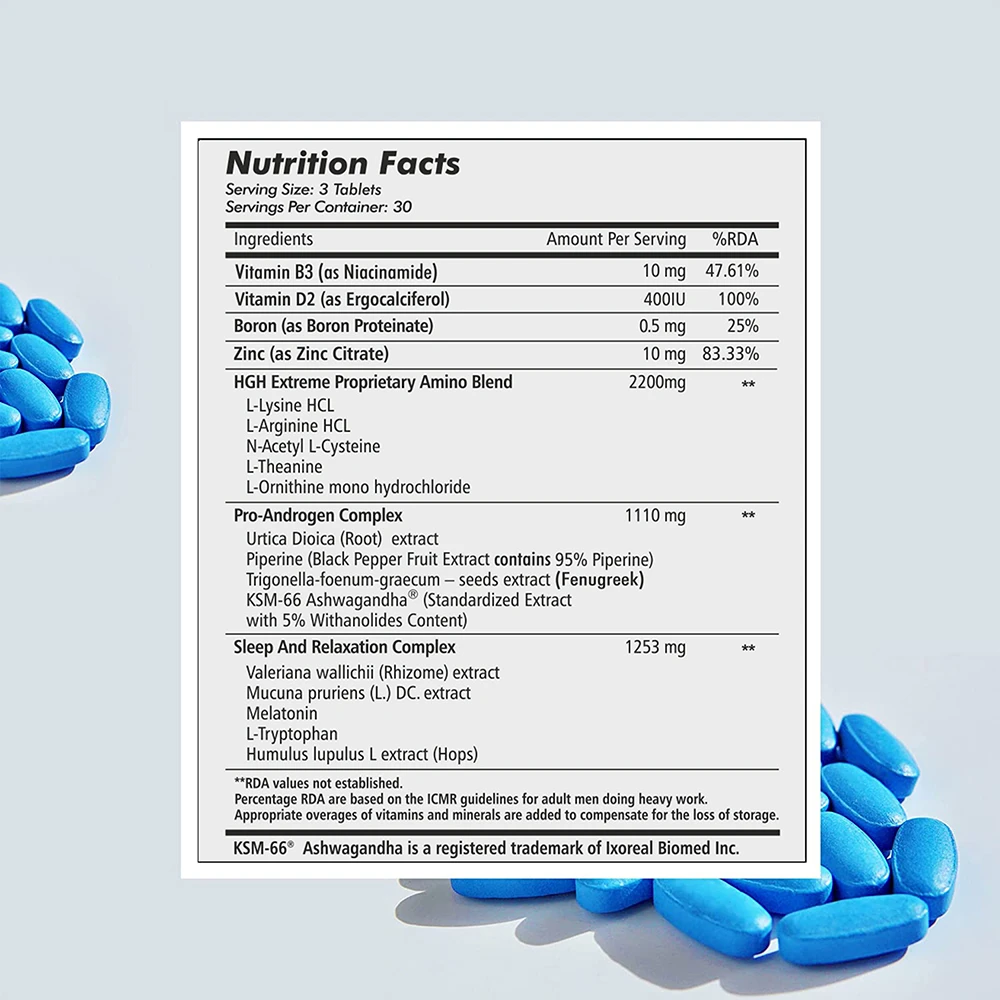 Adults take 3 tablets by mouth on an empty stomach, either in the morning two hours before breakfast or two hours after dinner prior to bedtime. [Do not eat two hours before or after taking HGH Extreme] Do not exceed 3 tablets in any 24-hour period.